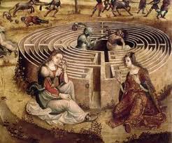 Teseo, hijo del rey Egeo, se esconde en uno de estos viajes, dispuesto a matar alMinotauro y liberar con ello a su pueblo. Al llegar a Creta, Ariadna, la hija del rey Minos, se enamora de Teseo y le entrega un hilo, el Hilo de Ariadna, con el que poder encontrar la salida. Teseo entra al laberinto desenrollando el hilo, encuentra alMinotauro y le da muerte, para alcanzar la libertad enrollando de nuevo el hilo.